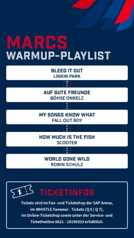 marcsWARMUP-PLAYLISTAUF GUTE FREUNDE B%u00d6HSE ONKELZ MY SONGS KNOW WHATFALL OUT BOYHOW MUCH IS THE FISHSCOOTERWORLD GONE WILDROBIN SCHULZTICKETINFOSTickets sind im Fan- und Ticketshop der SAP Arena, im WHISTLE Fanwear . Tickets (Q 6 | Q 7), im Online-Ticketshop sowie unter der Service- und Tickethotline 0621 - 18190333 erh%u00e4ltlich. BLEED IT OUTLINKIN PARK