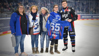 „Ich weiß, dass ich immer mein Bestes für diesen Club geben werden. Es wird mir nicht immer zu meiner eigenen vollen Zufriedenheit gelingen, aber für mich stehen die Adler immer an erster Position. Daher ist es für mich eine besondere Ehre, diese Auszeichnung entgegenzunehmen, die von den Fans entschieden wird“, äußerte sich der 29-Jährige bei der Ehrung im Vorfeld der Partie gegen die Schwenninger Wild Wings.