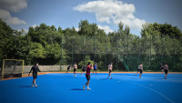 Während am Dienstagmorgen bei strahlendem Sonnenschein gegen 09.30 Uhr rund um das Gelände des Mannheimer Hockeyclub lediglich Traktorengeräusche zu hören sind, versammeln sich einige unserer Jungs, um sich auf eine weitere Einheit des derzeit stattfindenden Sommertrainings einzustimmen. Auf dem in Blau gehaltenen Kunstrasen, – passend zum gleichfarbigen Himmel bei höchstsommerlichen Temperaturen – auf dem normalerweise Feldhockey gespielt wird, heißt es an diesem Tag wieder einmal: Heiß, Fleiß, Schweiß.