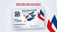 Sichere dir jetzt deine Dauerkarte für die kommende Saison! Sei live dabei, spüre die Action auf dem Eis hautnah, feuere die Jungs an jedem Spieltag von deinem Stammplatz aus an und profitiere dabei auch noch finanziell vom nur noch für kurze Zeit verfügbaren Treuerabatt. Jetzt Dauerkarte verlängern!