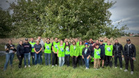 Vier Adler-Spieler und unser Partner VR Bank Rhein-Neckar eG mit rund 20 Mitarbeitern, dazu die Familien und Freunde. So setzte sich das Apfelernte-Team zusammen, das am gestrigen Mittwochnachmittag in Ludwigshafen Oppau fleißig die süßen Früchte vom Baum geholt hat. Hintergrund: Kindern mit der Natur in Verbindung bringen, ihnen zeigen und erklären, wir Dinge in Zusammenhang stehen, wo sie herkommen und wie sie entstehen.