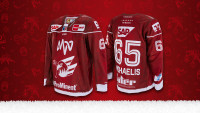 Großflächig in dunklem Rot gehalten, sticht das diesjährige Weihnachtstrikot direkt ins Auge. Eine weiße Fellfläche begrenzt das Jersey am unteren Ärmel- und Trikotrand. Passend dazu sind die Spielernummern und -namen sowie alle Sponsorenlogos in Weiß gehalten. Vielen Dank an dieser Stelle an unsere Trikotpartner für ihre Bereitschaft, diesen Designschritt mitzugehen und so ein einheitliches Bild zu ermöglichen. Daneben zieren die gesamte Trikotfläche kleine Eishockey- und Weihnachtselemente, wie Helme und Schlittschuhe, aber auch Tannenzweige, Schleifen und Sterne sowie ein dezenter Farbverlauf.