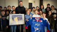 Während die letzte Reihe in einem Klassenzimmer meist als erste besetzt wird, setzte sich Tom Kühnhackl ganz vorne auf den Lehrerplatz. Bepackt mit Schläger, Trikot, Mannschaftsbild und einem Satz Autogrammkarten betrat der Schulpate des Johanna-Geissmar-Gymnasiums wenige Augenblicke zuvor den Klassenraum. Mit einem kreativen Video hatten sich die fünften Klassen des JGG zuvor um den Posten als eine von vier Adler-Schulen beworben.