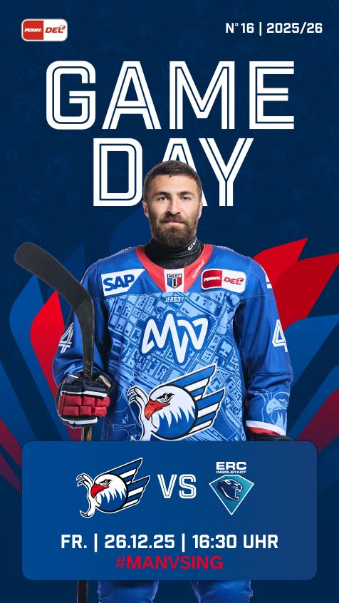 Die Adler Mannheim haben das Heimspiel am zweiten Weihnachtsfeiertag verloren. Gegen Ingolstadt unterlag das Team von Cheftrainer Dallas Eakins mit 2:5. Die Treffer für die Adler erzielten Matthias Plachta und Nick Mattinen.