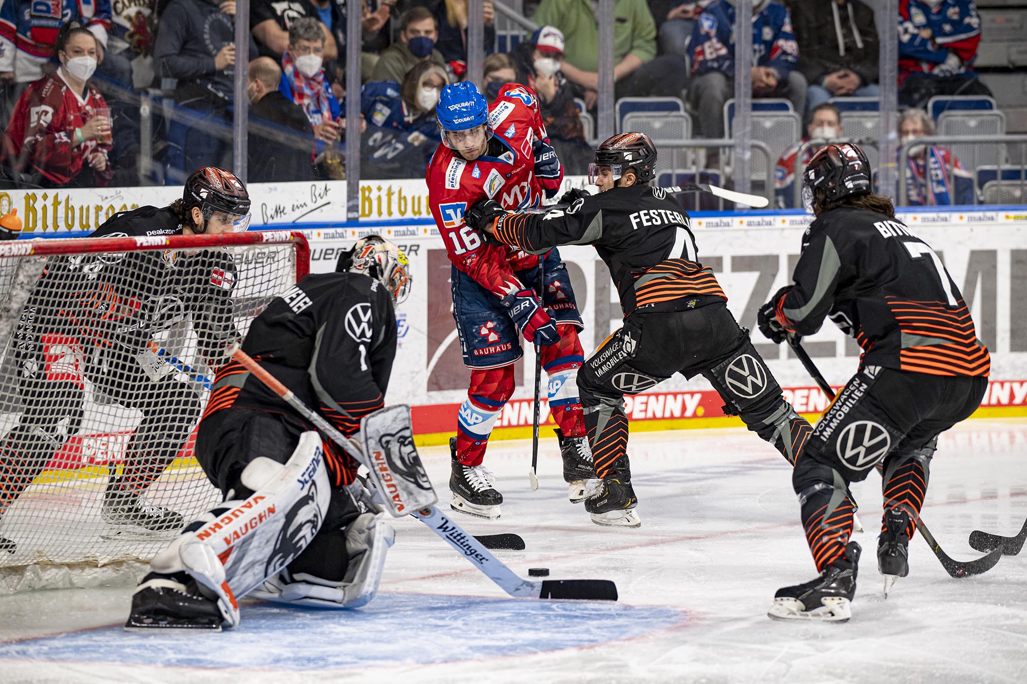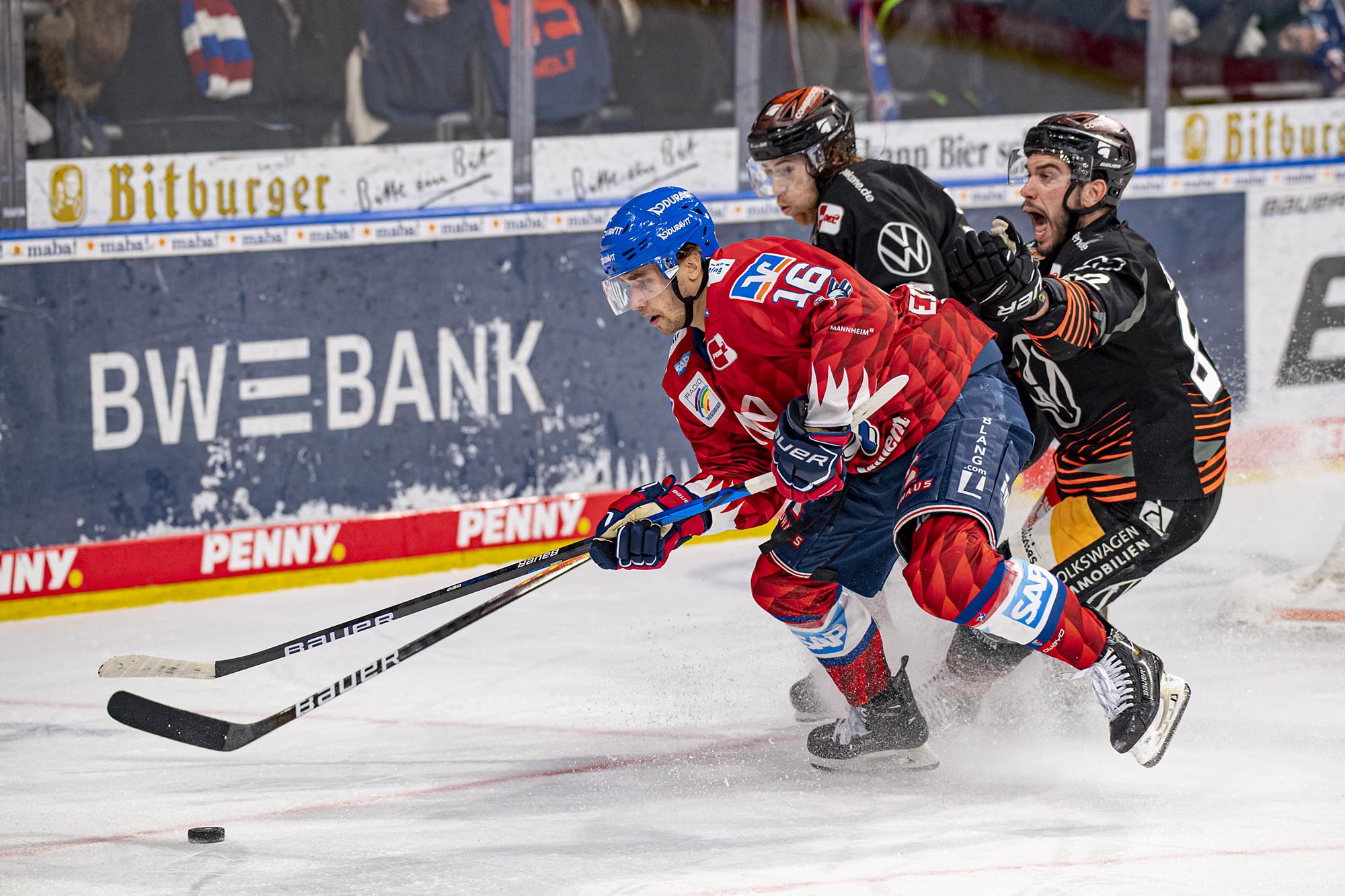 Mannheim fand nach und nach besser ins Spiel und hatte im zweiten Abschnitt auch die besseren Chancen. Doch Dustin Strahlmeier zeigte gegen Tim Wohlgemuth seine Klasse (26.), hatte bei den Möglichkeiten von Matthias Plachta (27.), Thomas Larkin (30.) und erneut Wohlgemuth (32.) etwas Glück. Endras stand seinem Gegenüber in Nichts nach, hielt die Führung lange fest, war beim Ausgleichstreffer durch Tyler Gaudet (35.) aber machtlos.