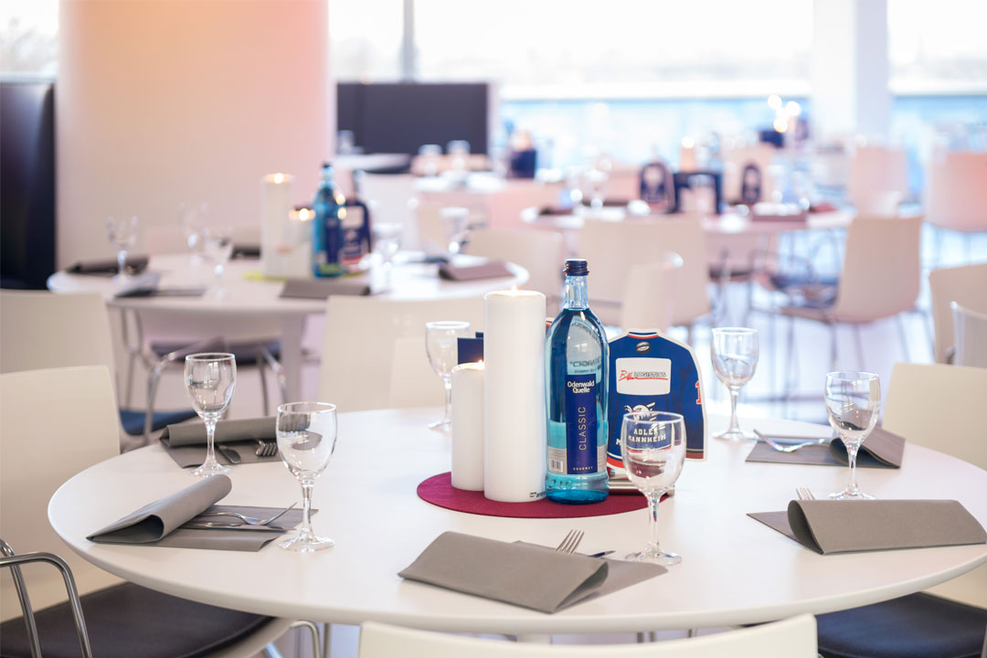 Im Business Club der SAP Arena wird Geselligkeit großgeschrieben. Die offene Raumgestaltung mit einer geräumigen Bar lädt zu einem kommunikativen Miteinander ein.