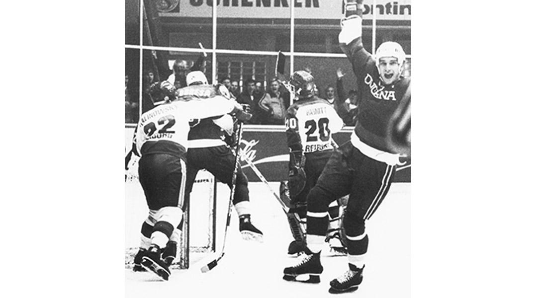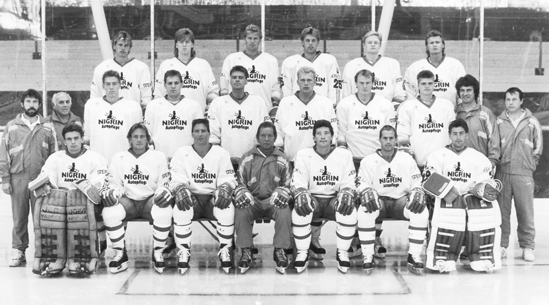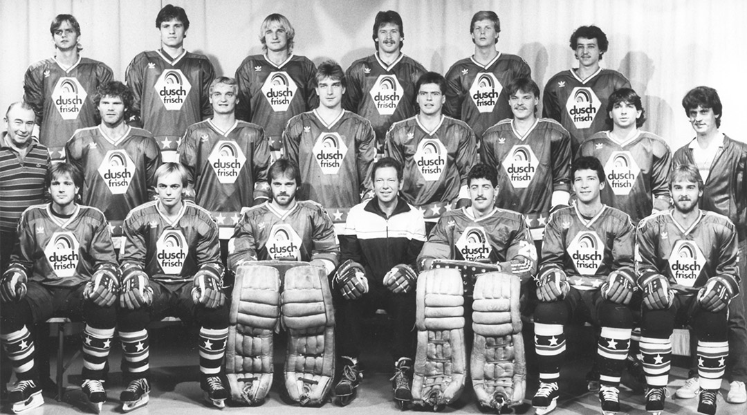 Das Meisterteam: Erich Weishaupt, Joachim Casper, Harold Kreis, Brent Meeke, Norbert Mundo, Dan Djakalovic, Boguslav Malinowski, Werner Jahn, Marcus Kuhl, Holger Meitinger, Ron Andruff, Manfred Wolf, Roy Roedger, Peter Ascherl, Elias Vorlicek, Klaus Mangold, Jörg Etz, Peter Obresa und Jürgen Adams.
