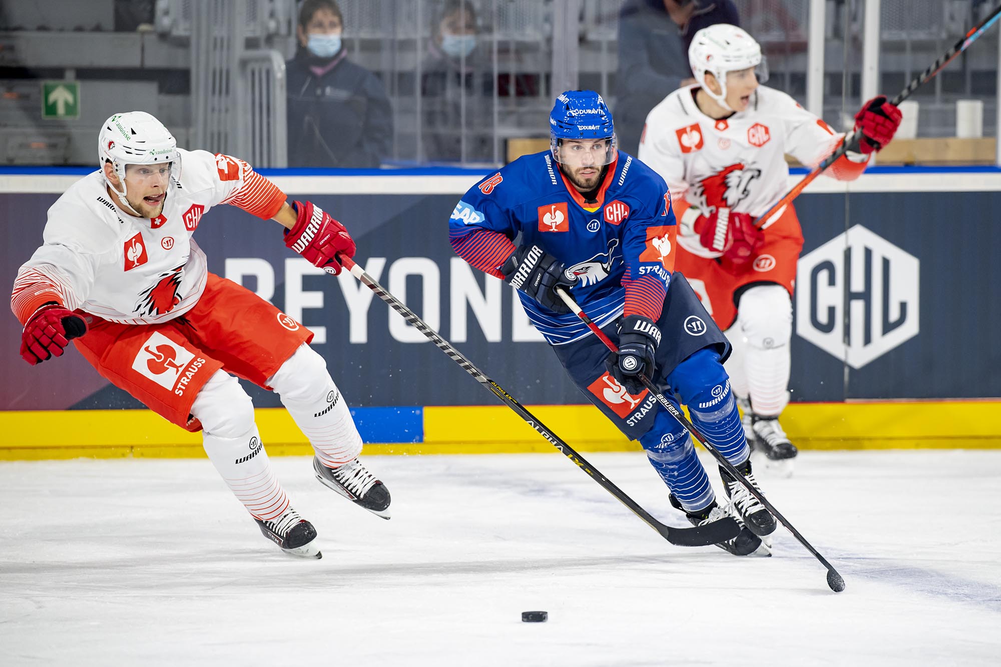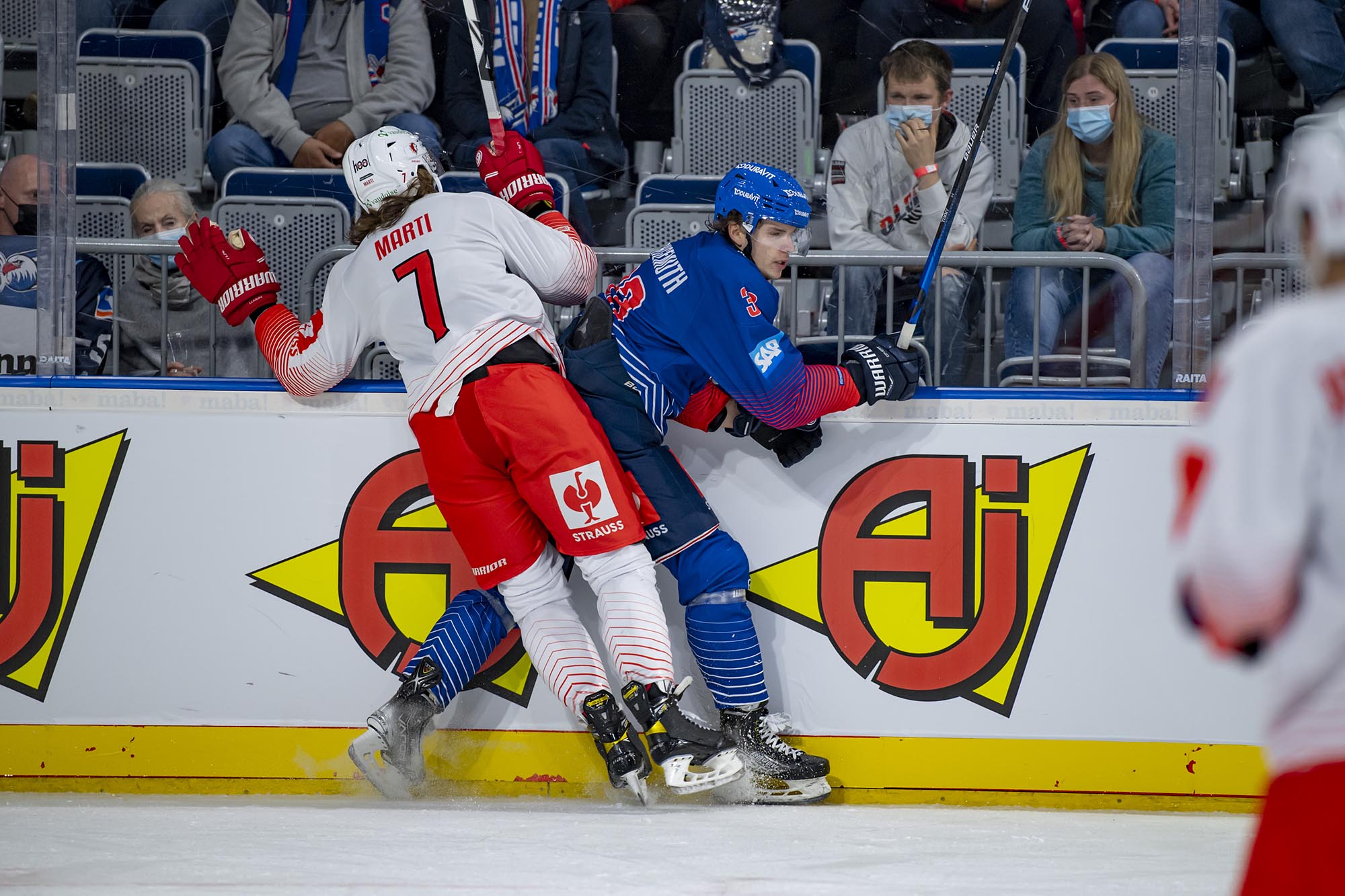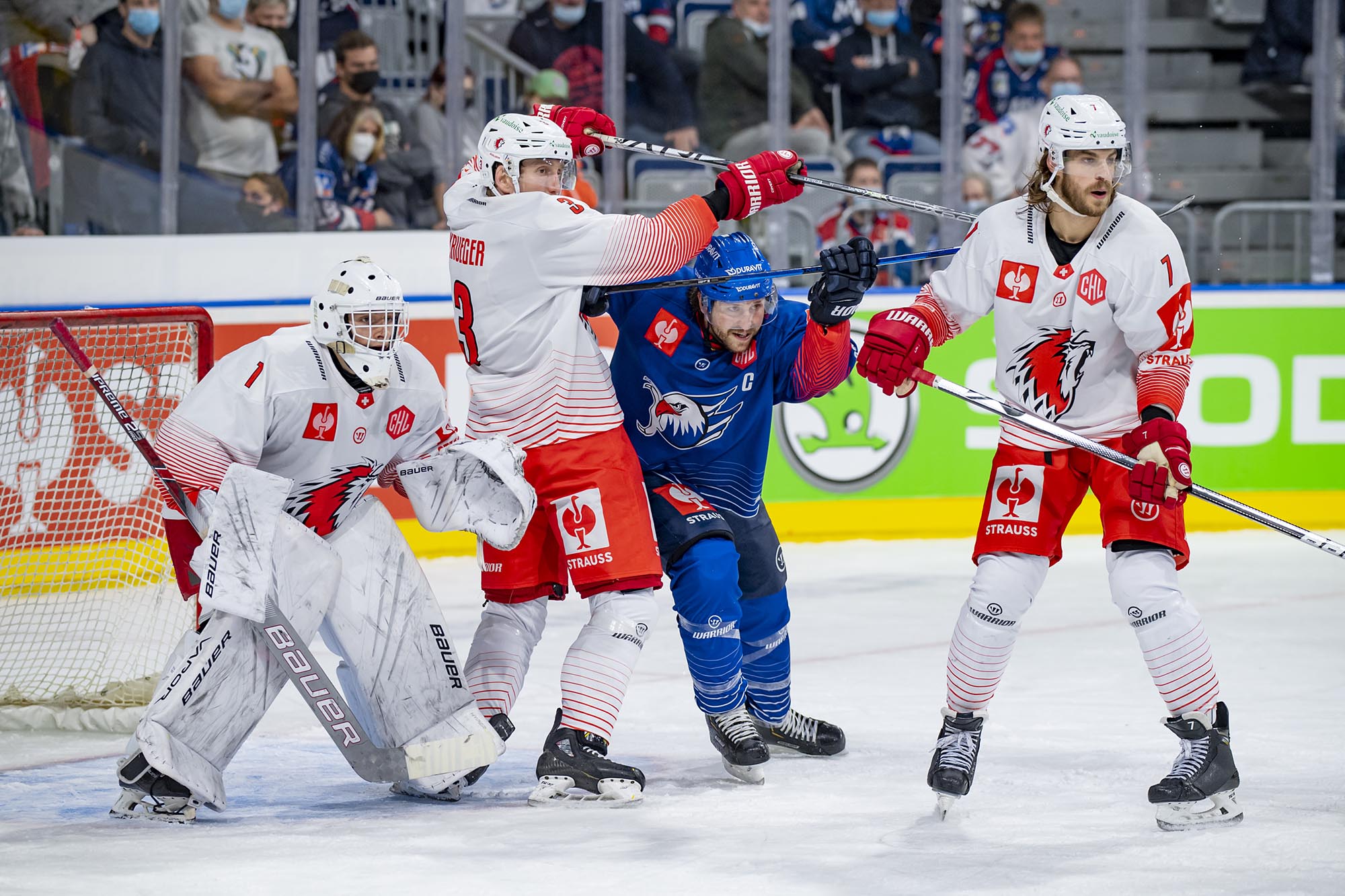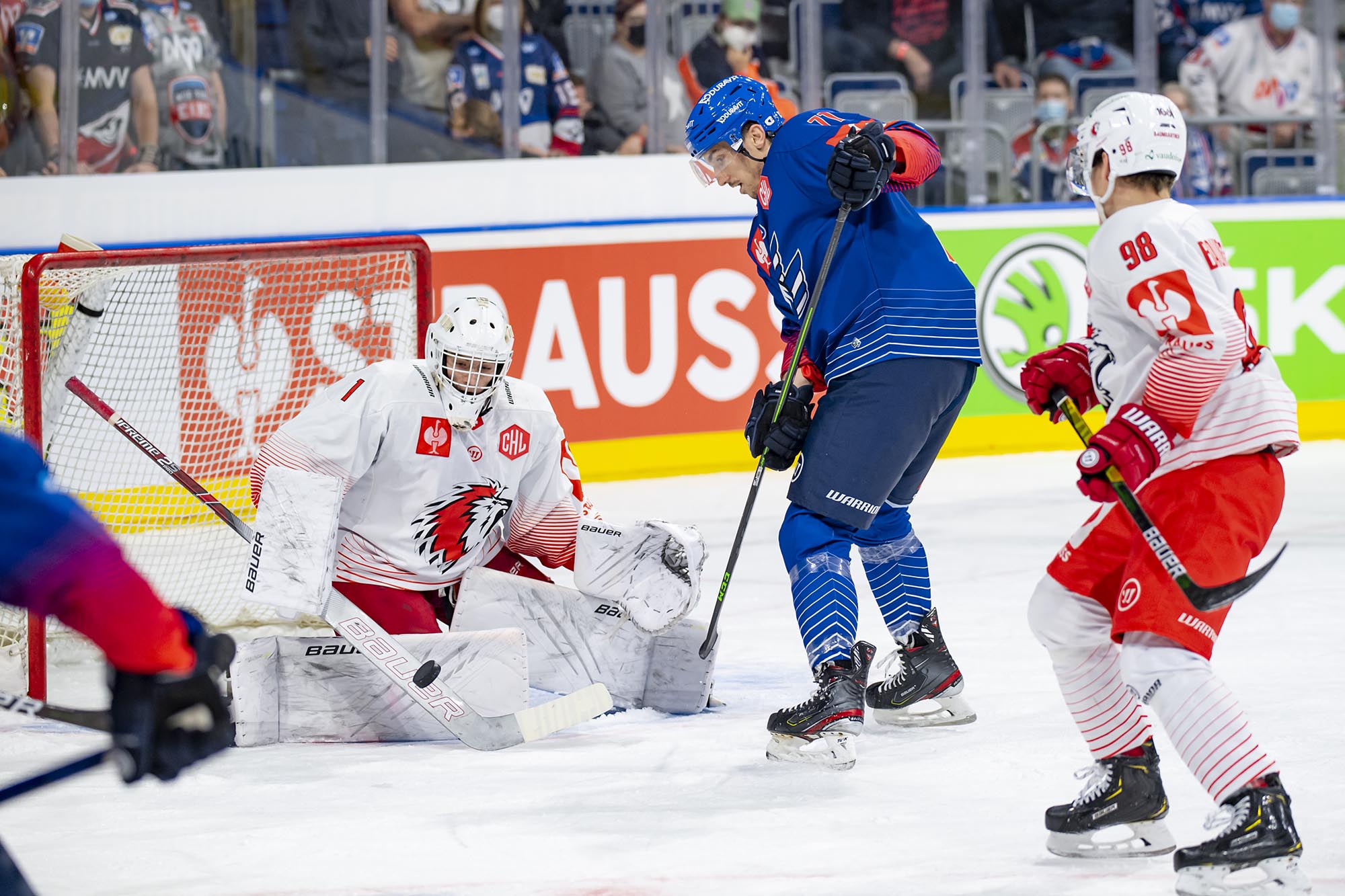 Mit dem 21 Jahre alten Florian Mnich im Tor und dem 17-jährigen Stürmer Ralf Rollinger waren die Adler den Gästen aus der Schweiz zu Beginn des ersten Drittels zwar optisch überlegen, doch Mnich bekam schon vor der ersten Pause einige Chancen, sich auszuzeichnen. In Minute neun stoppte er einen Alleingang der Eidgenossen. Doch kurz nach seiner dritten starken Parade gegen Phil Varone lag die Scheibe erstmals hinter ihm. Jiri Sekac hatte Lausanne in Führung gebracht (18.).