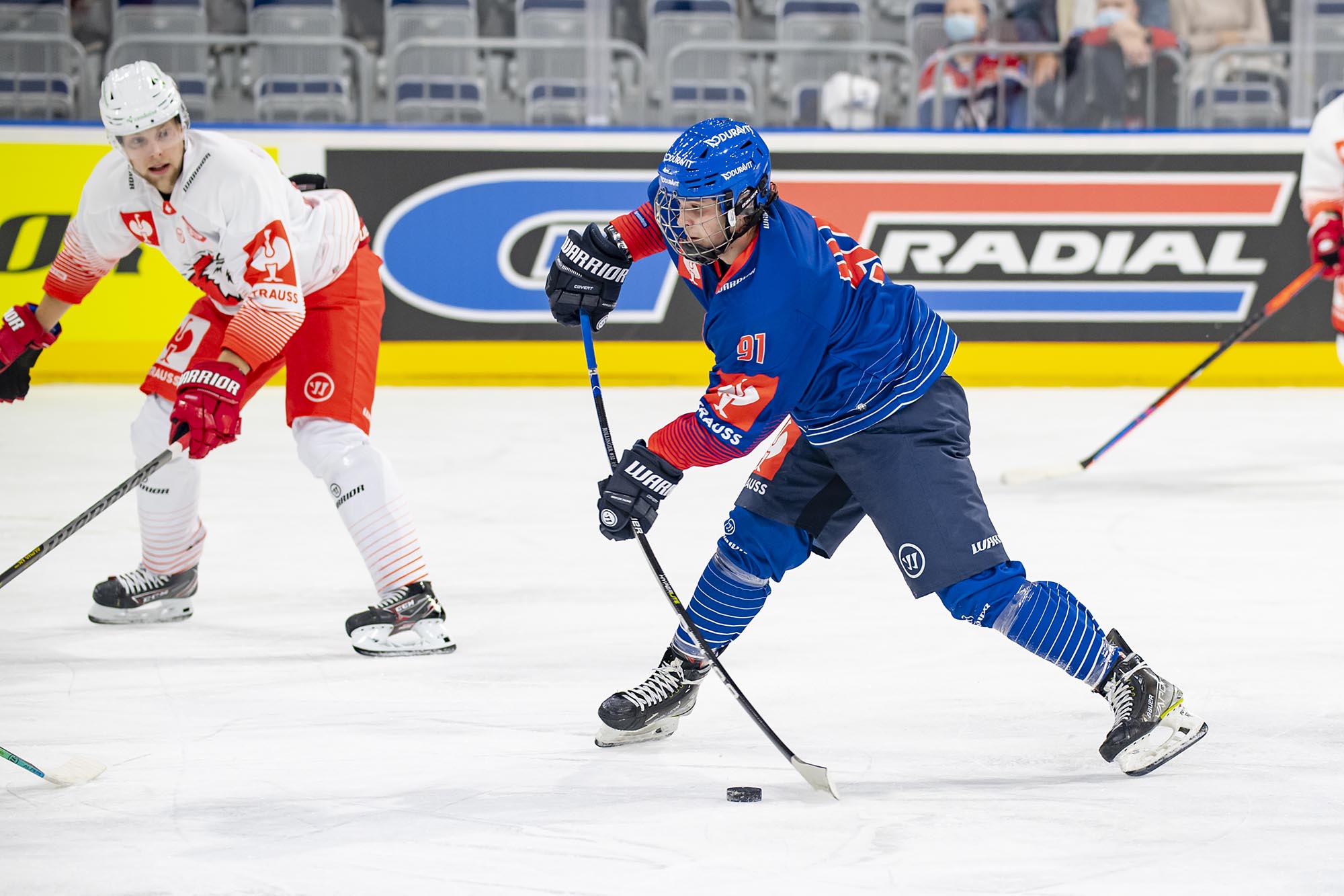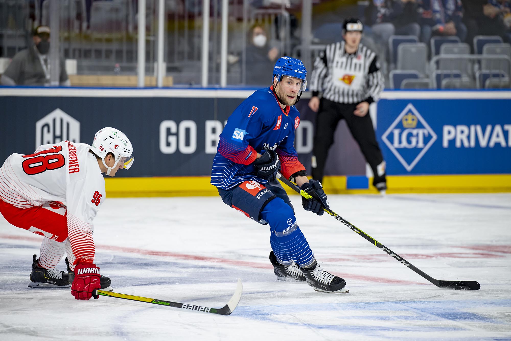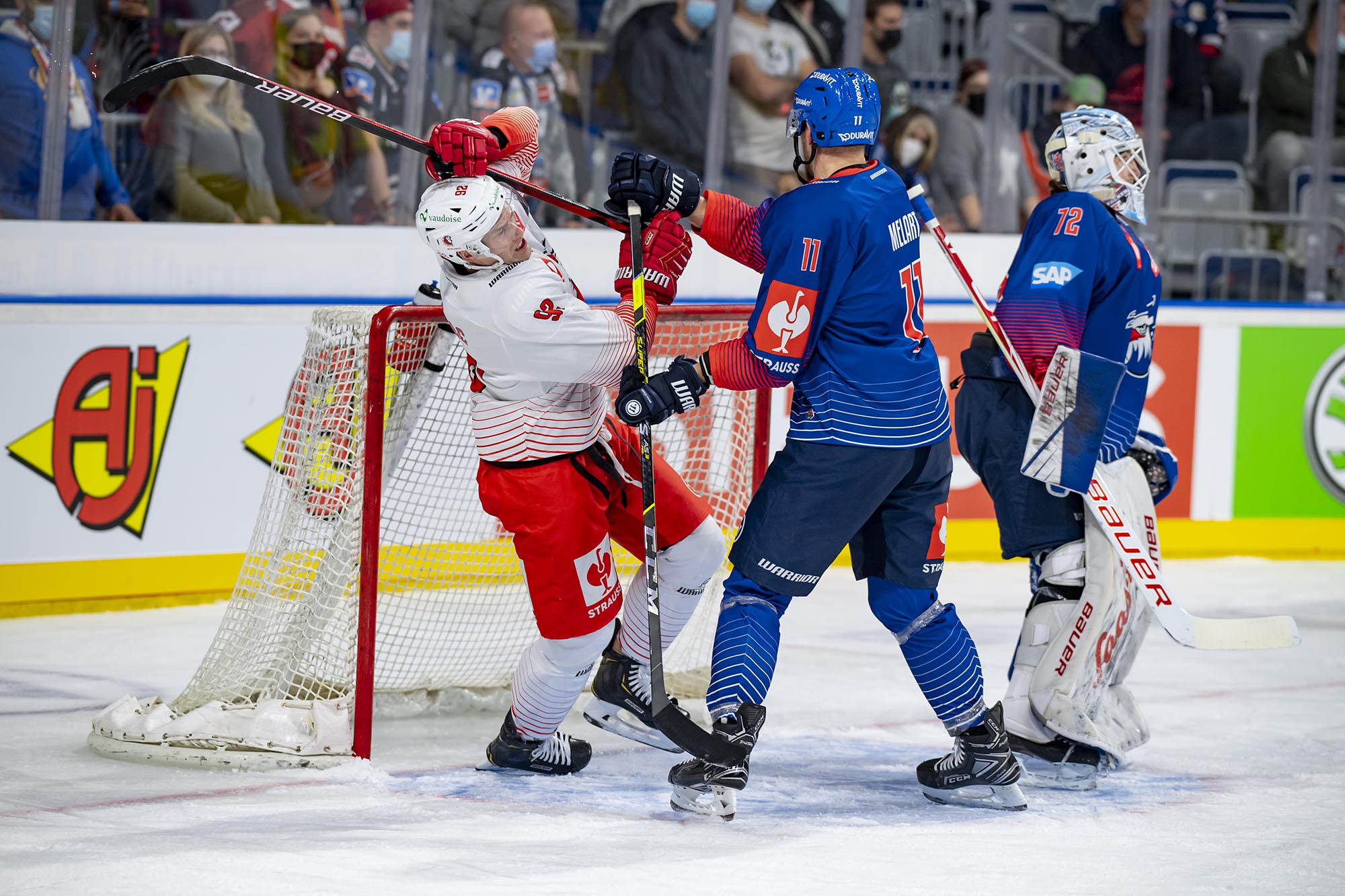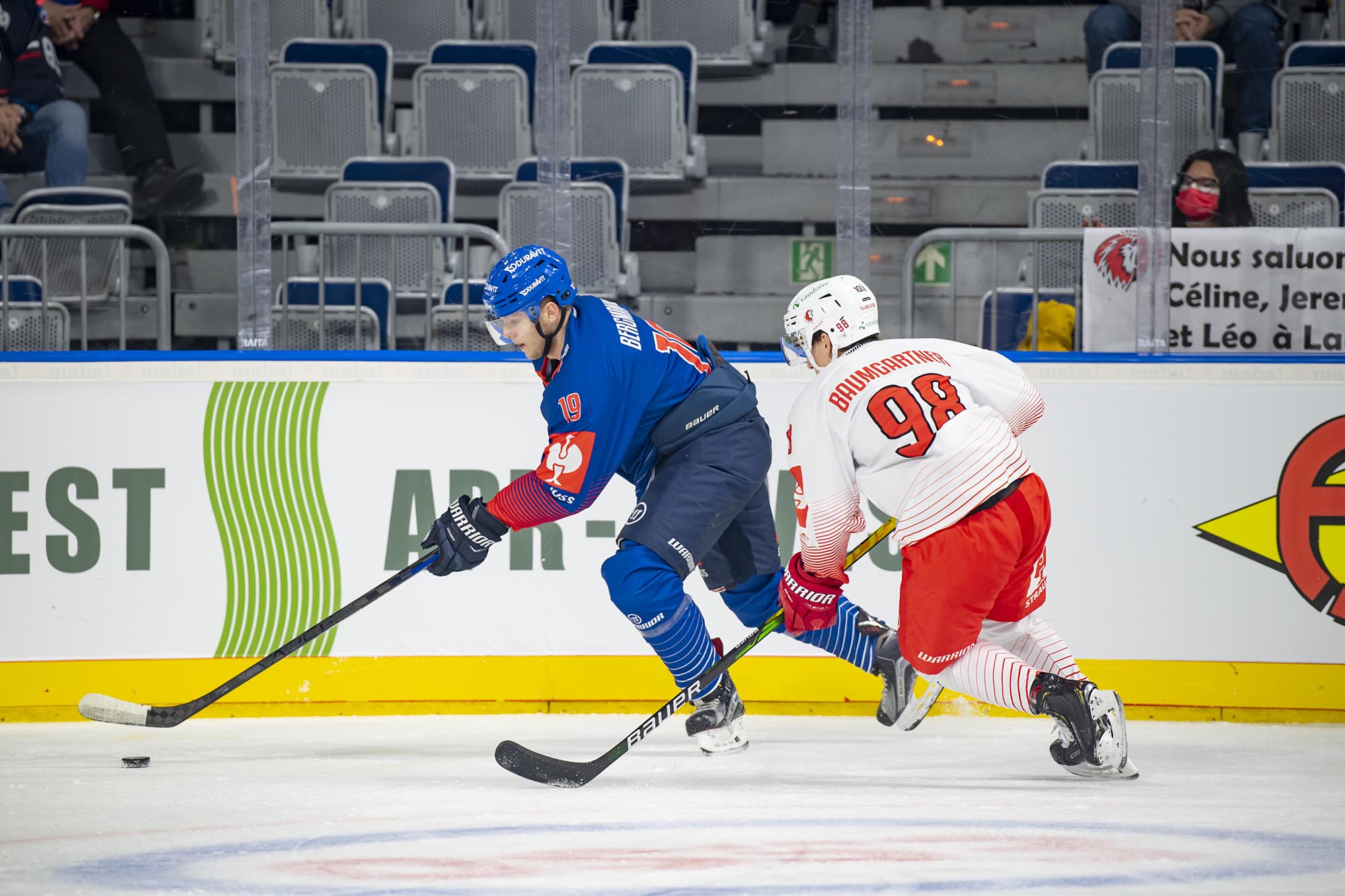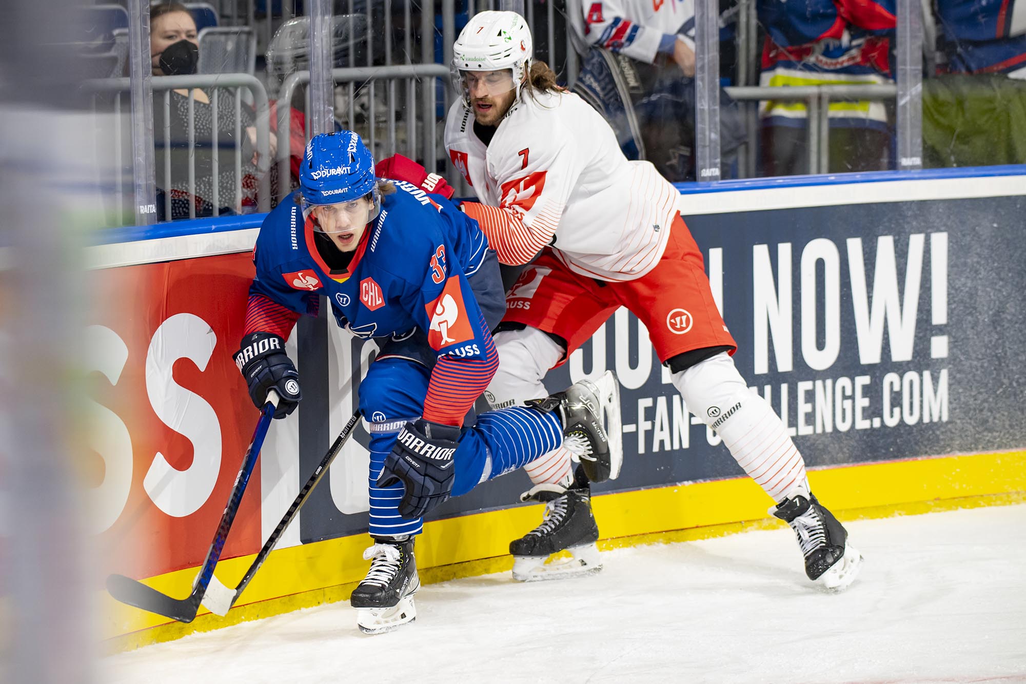 Mit dem 21 Jahre alten Florian Mnich im Tor und dem 17-jährigen Stürmer Ralf Rollinger waren die Adler den Gästen aus der Schweiz zu Beginn des ersten Drittels zwar optisch überlegen, doch Mnich bekam schon vor der ersten Pause einige Chancen, sich auszuzeichnen. In Minute neun stoppte er einen Alleingang der Eidgenossen. Doch kurz nach seiner dritten starken Parade gegen Phil Varone lag die Scheibe erstmals hinter ihm. Jiri Sekac hatte Lausanne in Führung gebracht (18.).