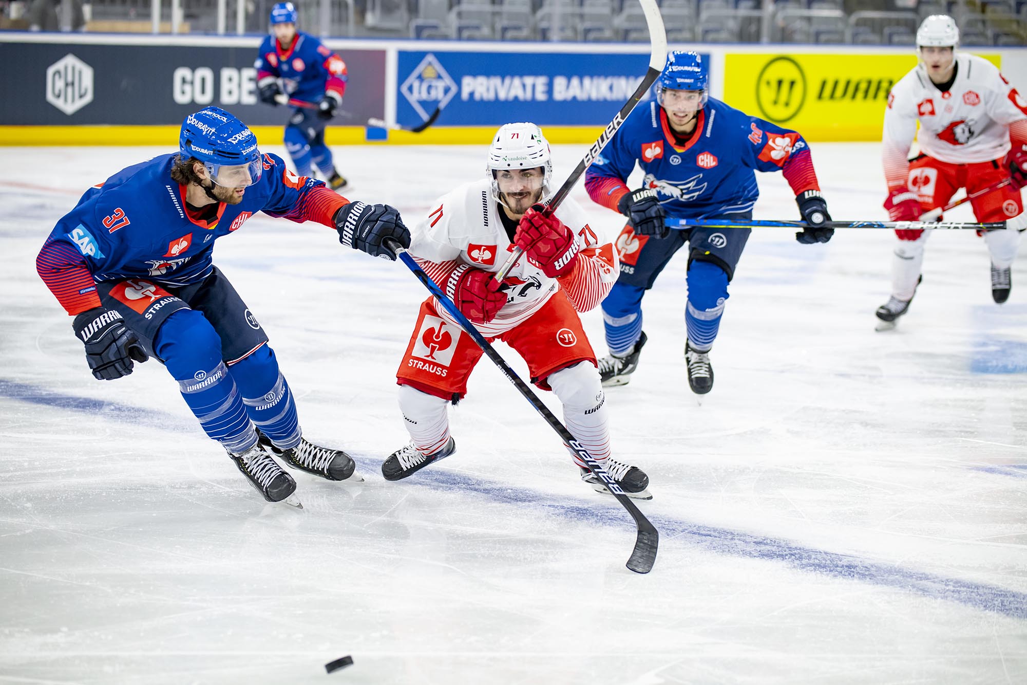 Im zweiten Abschnitt ließen die Adler den Offensivdrang etwas schleifen, kamen zu selten gefährlich vor das Tor der Schweizer. Bei doppelter Überzahl erhöhte Tim Bozon auf 2:0 (29.). Erst in der letzten Minute des zweiten Abschnitts konnte das Team von Trainer Pavel Gross den Gegner wieder etwas mehr unter Druck setzen, doch Lausannes erst 17 Jahre alter Keeper Loris Uberti hielt sich schadlos