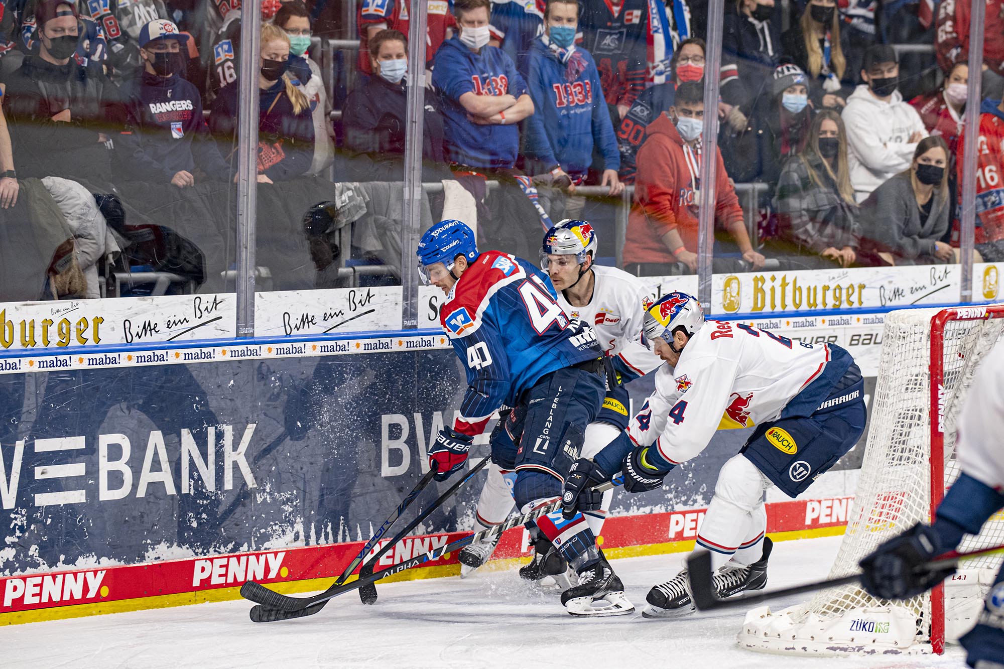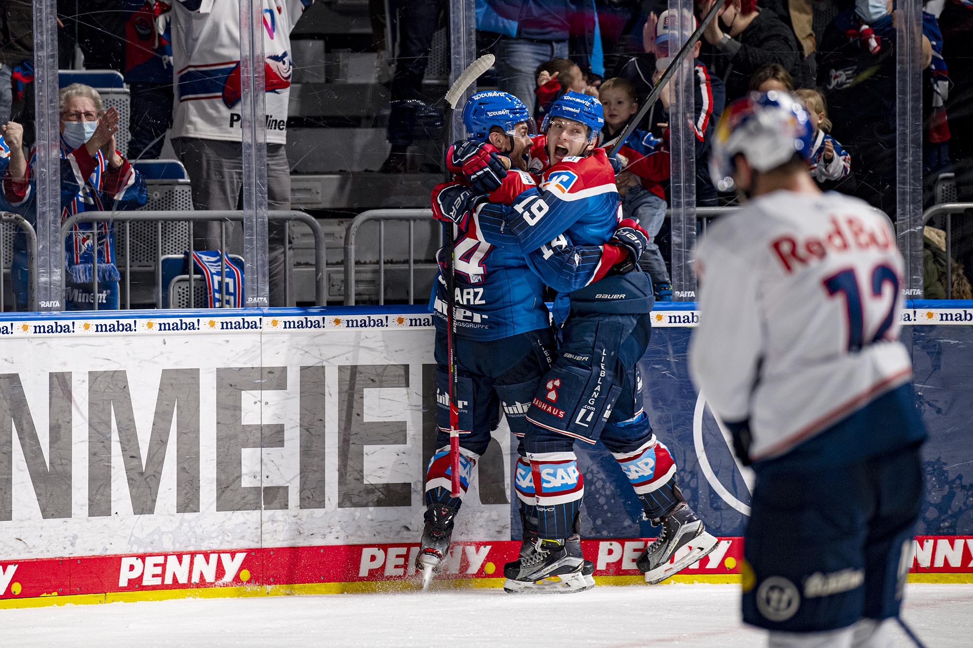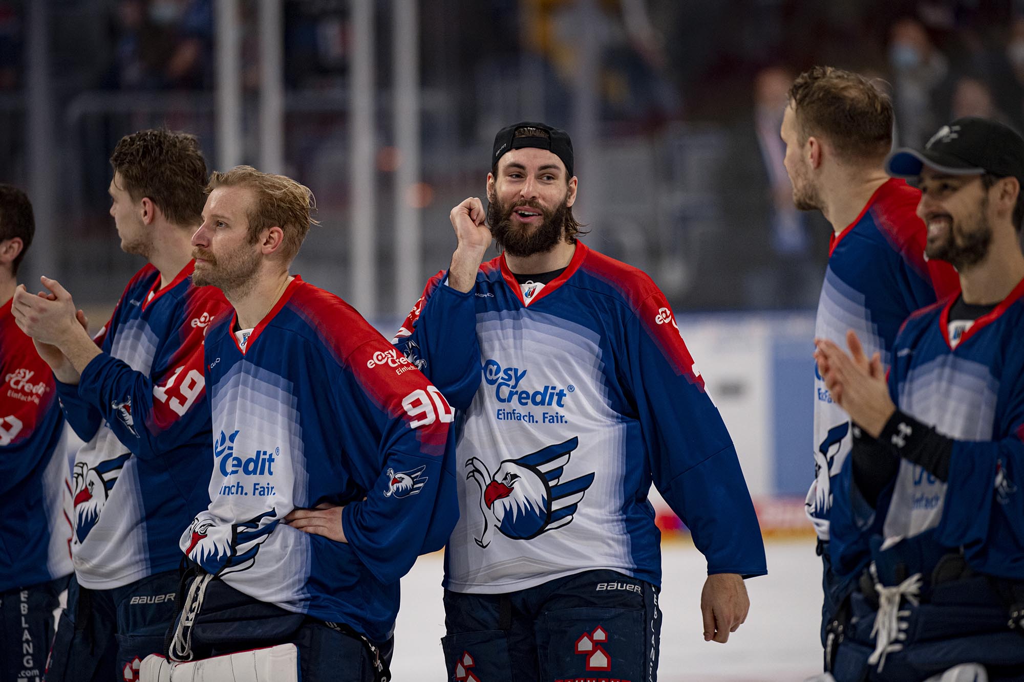 Die Partie war auch im dritten Abschnitt ausgeglichen, auch wenn beide Teams nun nicht mehr ganz so viele hochkarätige Torchancen zuließen. Als die Adler kurz vor Ende mit sechs Feldspielern auf den Ausgleich drängten, war Münchens aus den Birken machtlos. Jordan Szwarz nutzte am langen Pfosten den Querpass von Matthias Plachta zum 2:2 (59.). In der Verlängerung machte Nigel Dawes mit seinem neunten Saisontreffer den Sieg perfekt, nachdem Szwarz die Scheibe am kurzen Pfosten erobert hatte (62.).