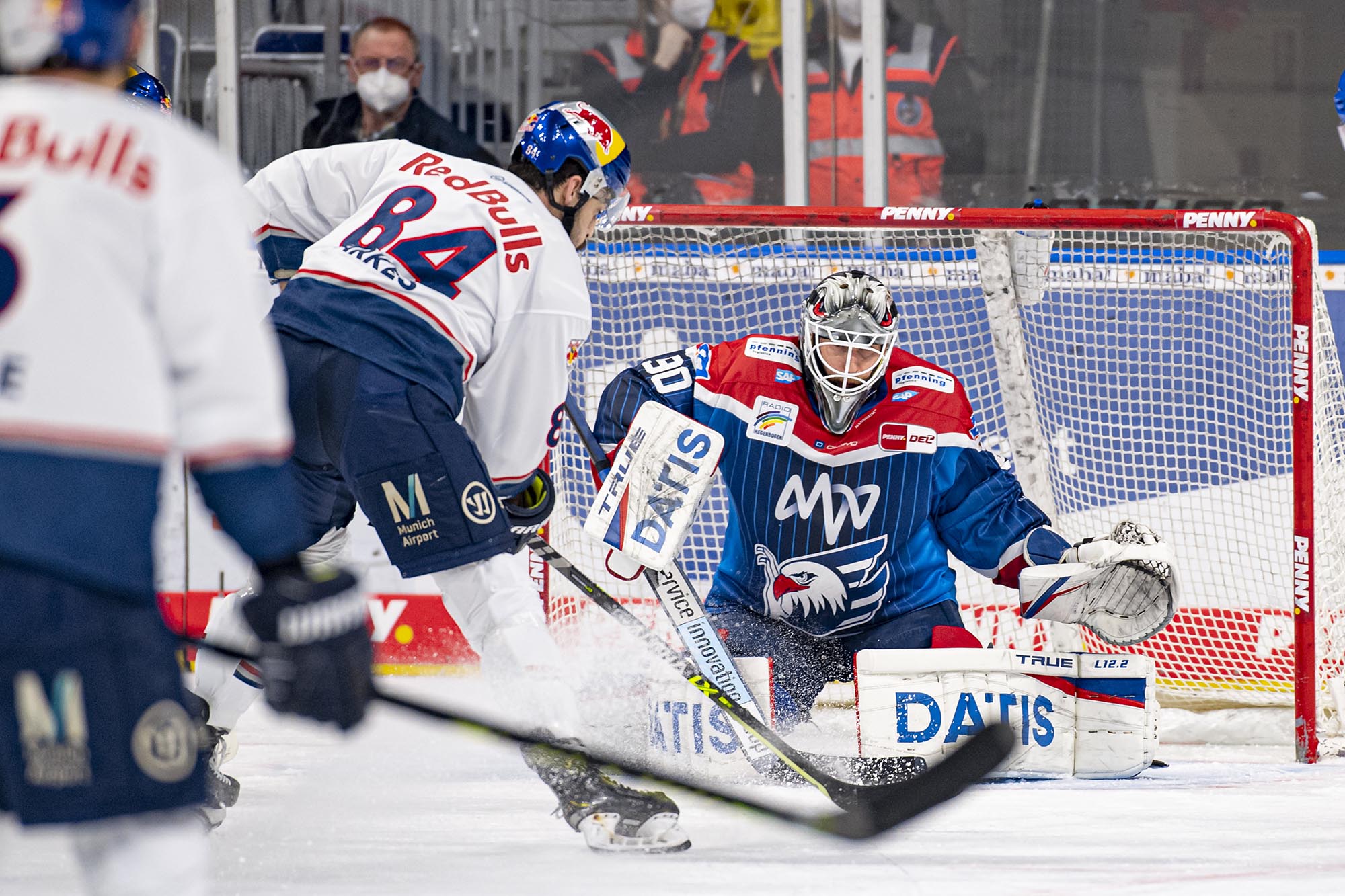 Nur kurz nach Wiederbeginn spitzelte Lean Bergmann die Scheibe zum verdienten 1:1-Ausgleich links oben in die Ecke des Münchener Tores (23.). Philip Gogulla scheiterte im Anschluss zwei Mal an Brückmann (25. und 28.), während Luca Tosto gegen aus den Birken den Kürzeren zog (28.). Frank Mauer ließen die Adler zur Mitte des Spiels einmal zu viel Platz, der Ex-Adler ließ sich nicht zwei Mal bitten und brachte München erneut in Front (30.).