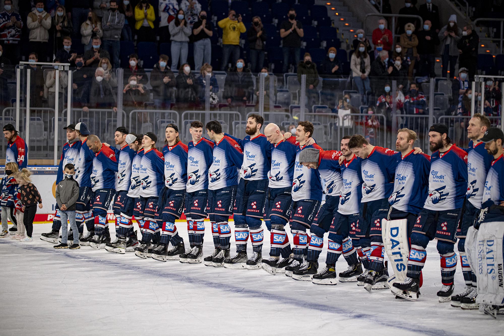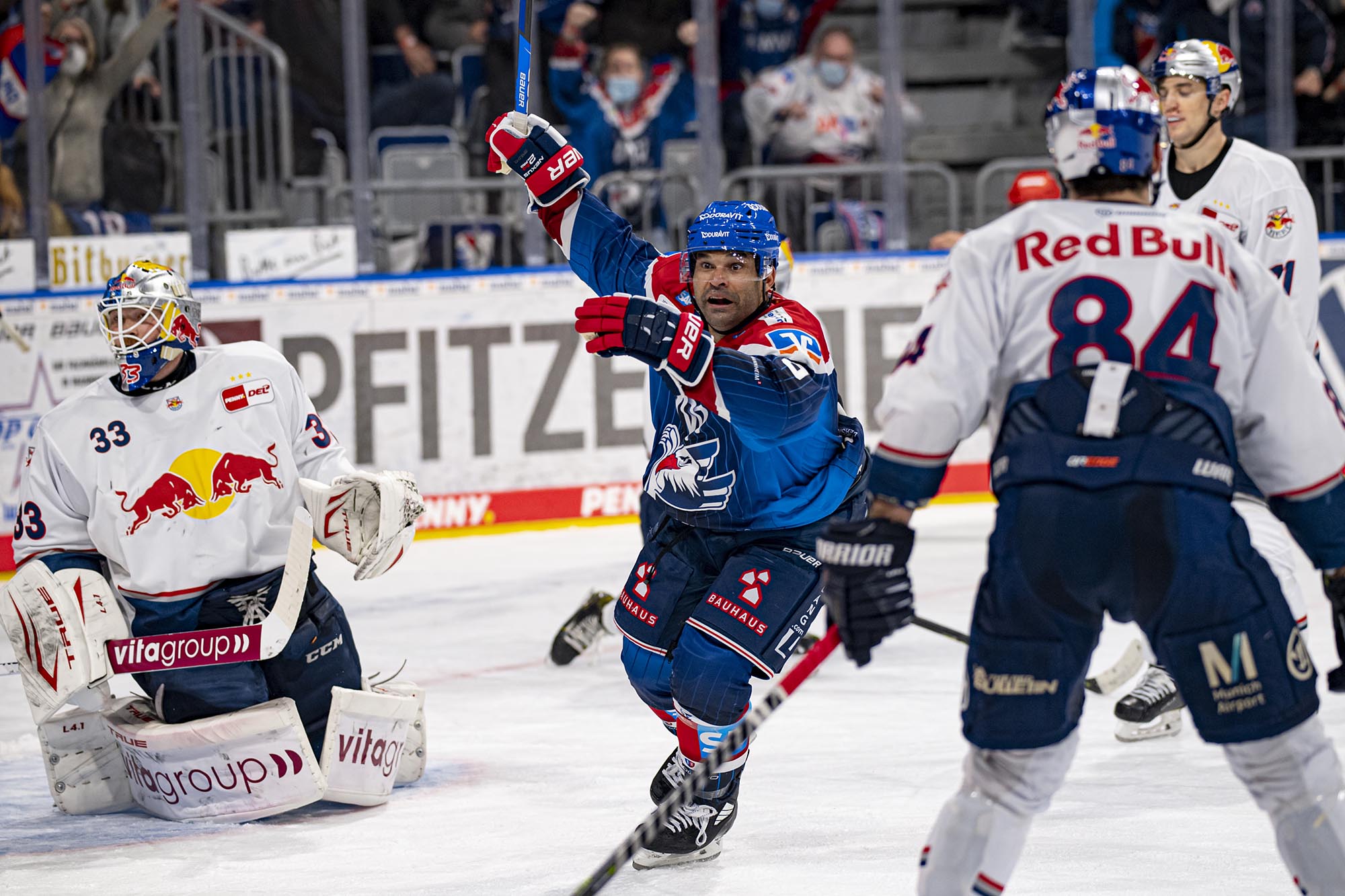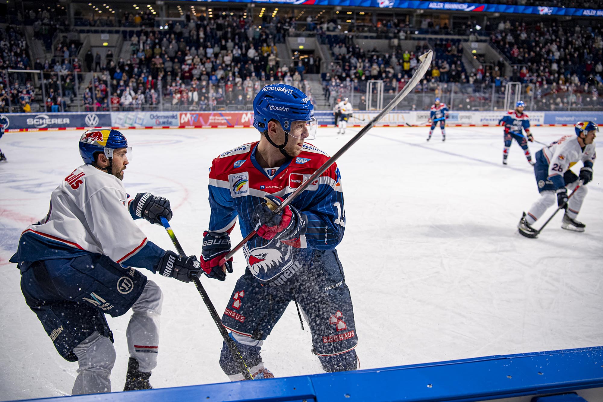 Mit den Rückkehrern Matthias Plachta und Andrew Desjardins standen Trainer Pavel Gross wieder 18 Feldspieler zur Verfügung, die sich mit dem dreifachen Deutschen Meister aus München über die gesamte Spielzeit ein Duell auf Augenhöhe lieferten. Schon im ersten Drittel hatten beide Teams hochkarätige Chancen, doch die beiden Torhüter Felix Brückmann und Danny aus den Birken zeigten eine herausragende Partie. Trevor Parkes brach schließlich den Bann und brachte die Gäste mit 1:0 in Führung (17.).