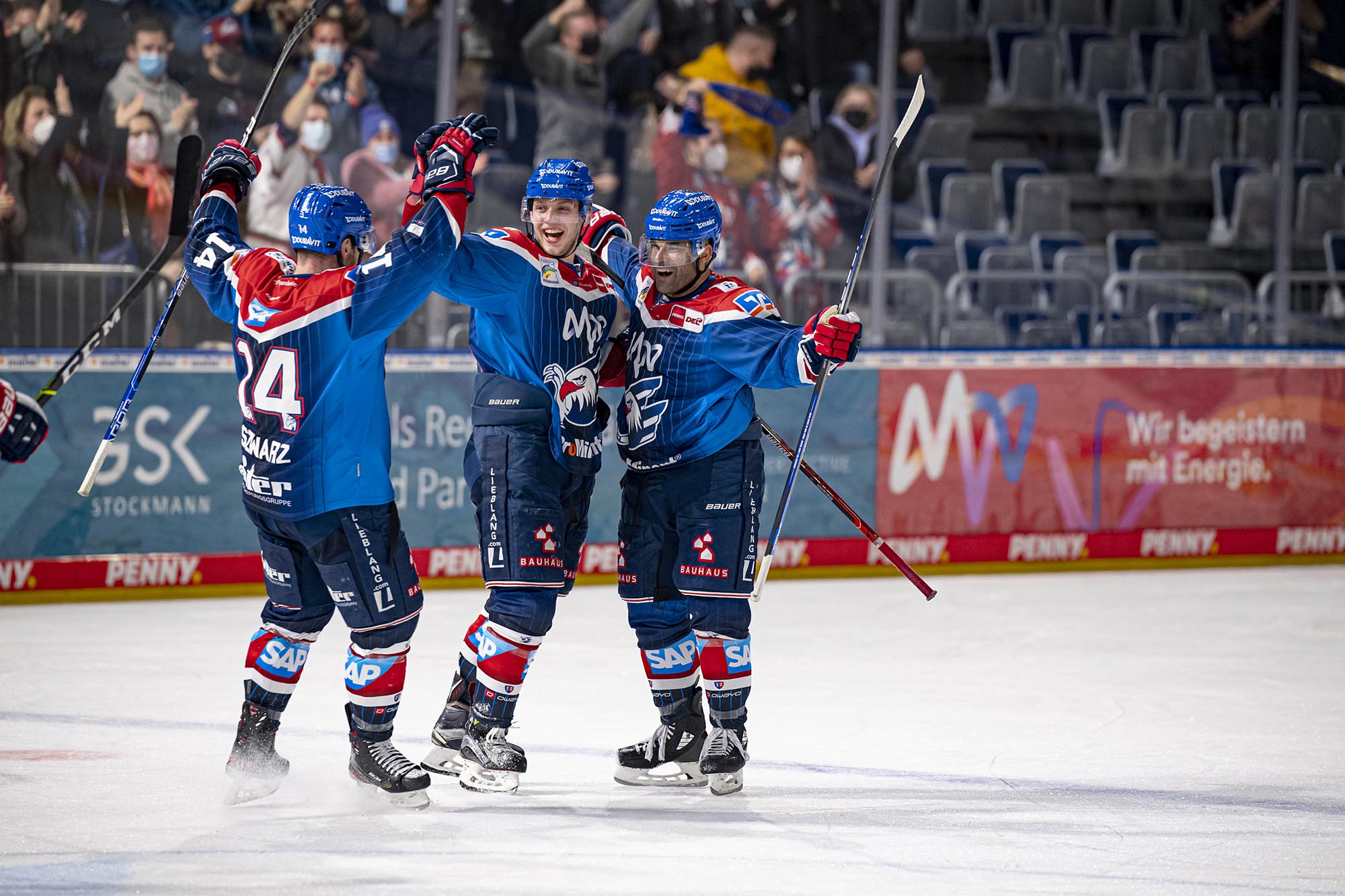 Nach zuletzt fünf Niederlagen in Folge haben die Adler den Weg zurück in die Erfolgsspur gefunden. Gegen den EHC Red Bull München gewannen die Blau-Weiß-Roten mit 3:2 nach Verlängerung und rücken damit dem Tabellenführer wieder auf die Fersen. Lean Bergmann und Jordan Szwarz konnten die Münchener Führung zwei Mal ausgleichen, Nigel Dawes erzielte in der Overtime den Siegtreffer.