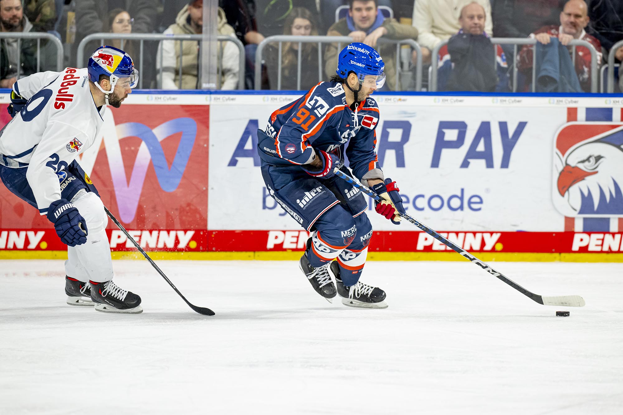 Mit vollem Lineup bezwingen die Adler den EHC Red Bull München. Tyler Gaudet, Markus Eisenschmid, Borna Rendulic, Jordan Szwarz und David Wolf erzielten die Tore bei Mannheims 5:1-Heimsieg gegen den Tabellenprimus. Damit verhinderten die Blau-Weiß-Roten zudem, dass München den DEL-Rekord der Adler mit zwölf Auswärtssiegen in Folge brechen konnte.