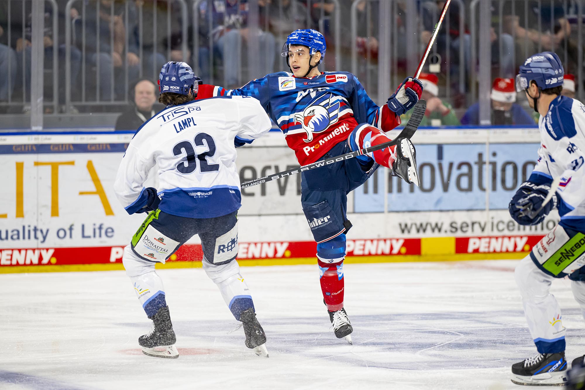 Im weiteren Spielverlauf glichen sich die Kräfteverhältnisse beider Mannschaften mehr und mehr an. Markus Eisenschmid zog von rechts vors Tor, fand aber die Lücke bei Bugl nicht (25.), Matt Donovan verfehlte den Kasten knapp (28.). Brückmann war dagegen gegen Travis St. Denis mit dem linken Schoner zur Stelle (34.). In dieser Phase waren die Gäste dem Ausgleich nah, doch ein schneller Konter über Nico Krämmer endete mit dem 3:1 durch Nigel Dawes (36.). Wenige Sekunden vor der zweiten Pause hatte Stefan Loibl das Auge für David Wolf, der seinen Alleingang kompromisslos zum 4:1 abschloss.