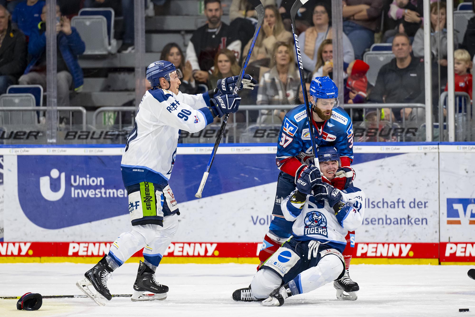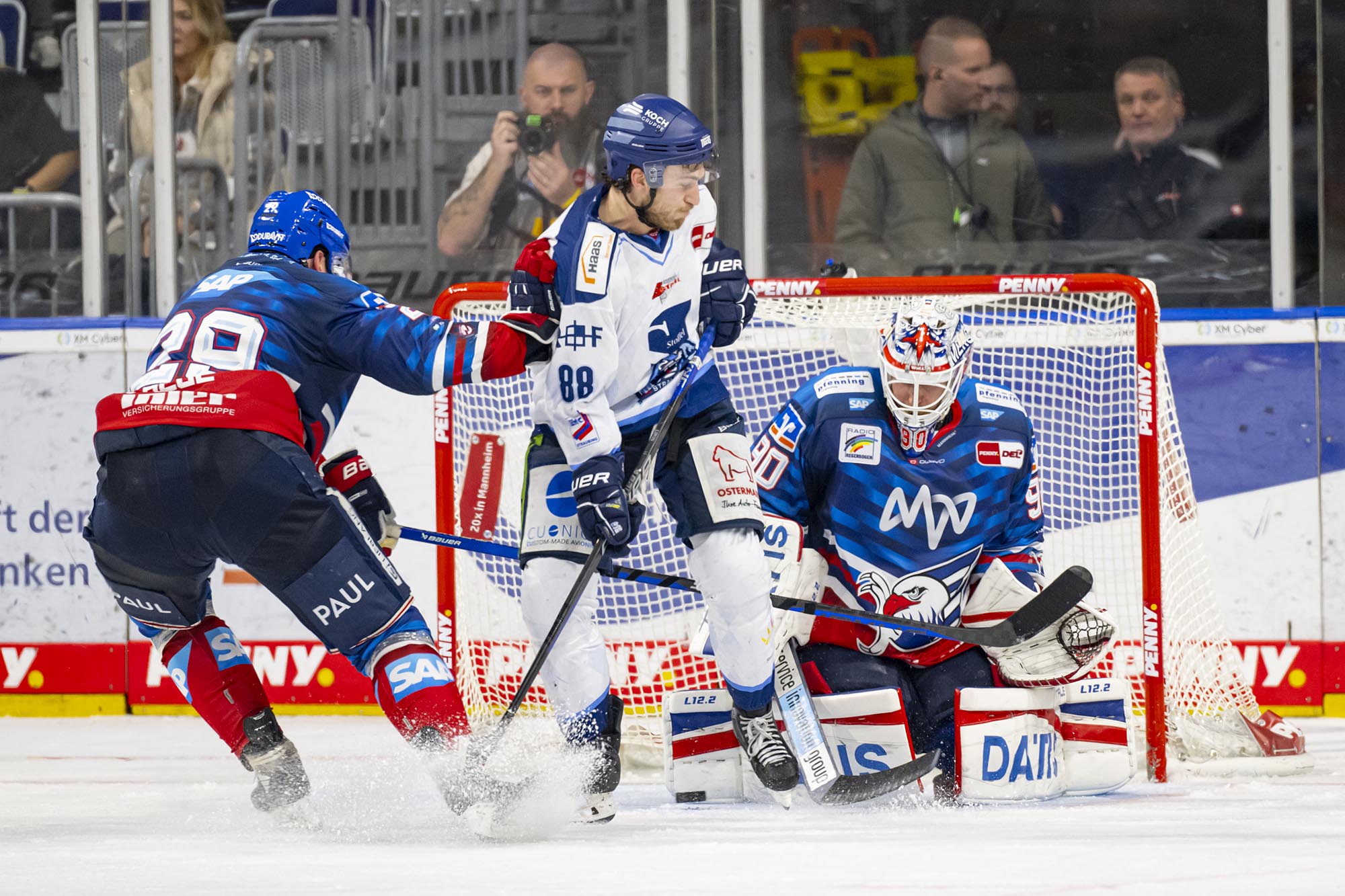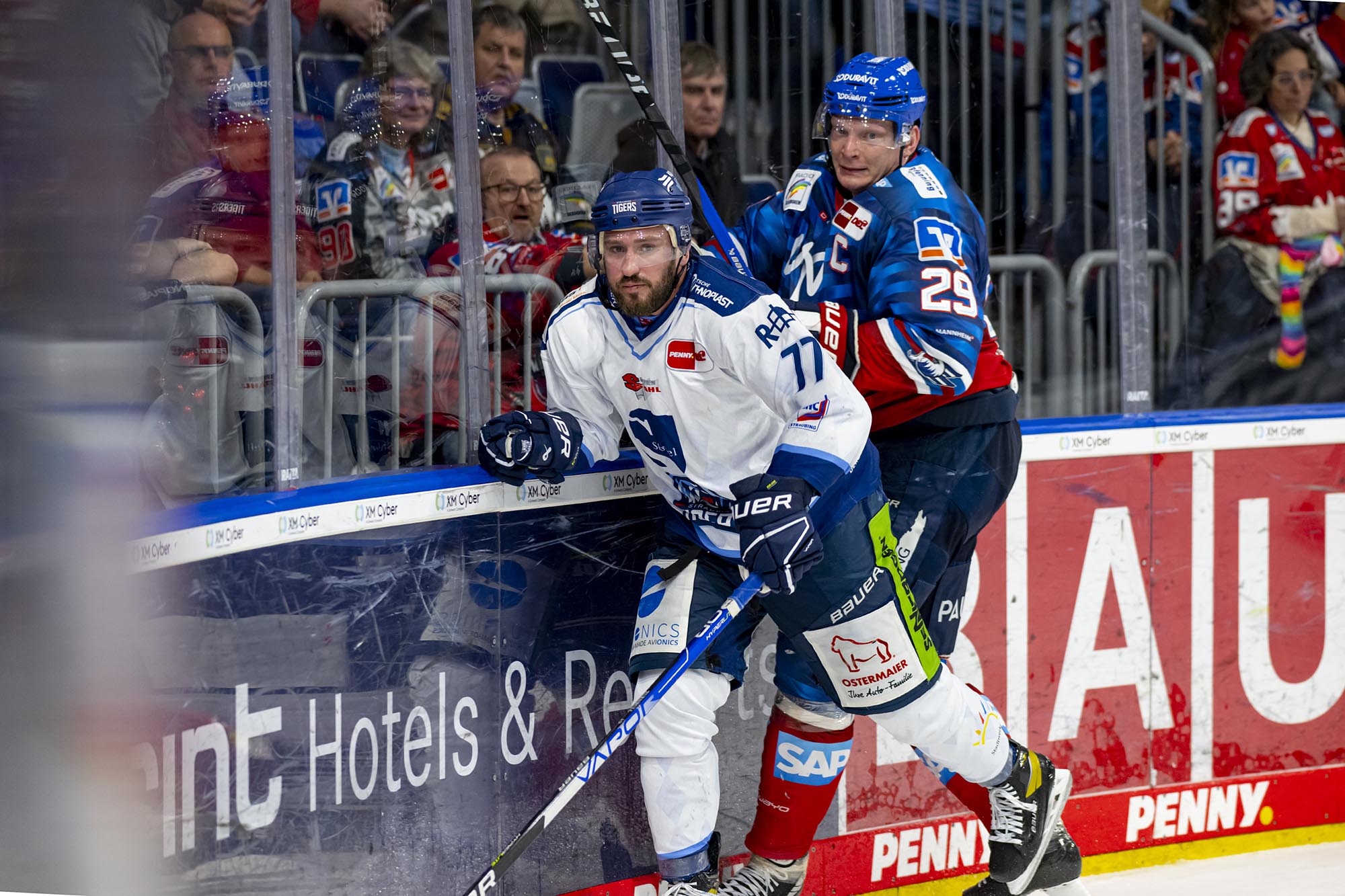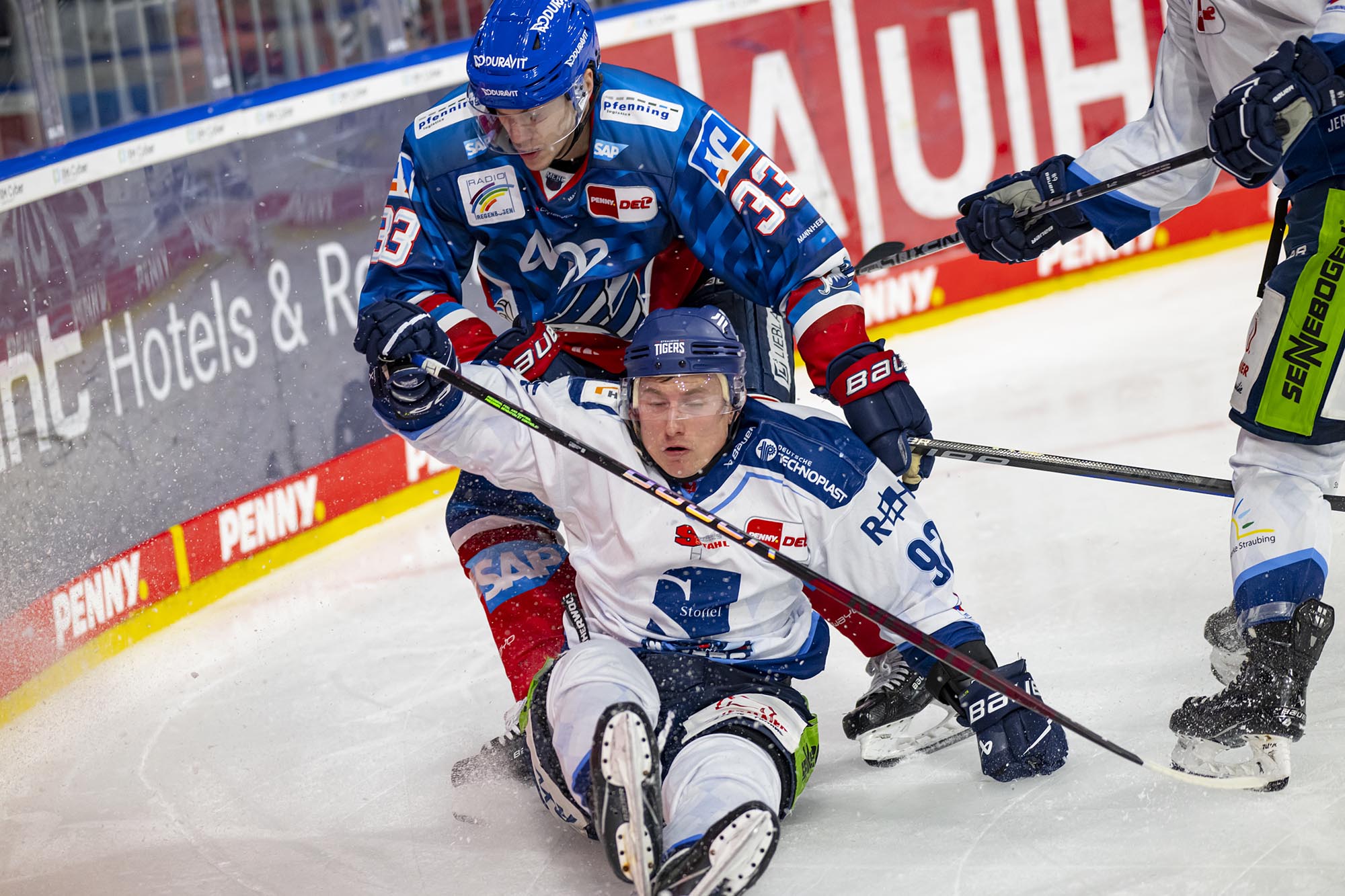 Die Adler wurden im Schlussabschnitt nicht zu passiv, agierten weiter nach vorne, wenngleich der Fokus auf einer sicheren Defensive lag. Thomas Larkin verpasste die mögliche Vorentscheidung bei seinem Pfostenschuss (45.). In Überzahl kamen die Tigers dagegen nochmals auf 2:4 heran, Luke Adam war vom linken Bullykreis erfolgreich (48.). Mit zwei Strafen kurz hintereinander nahm sich Straubing gegen Ende der Partie selbst den Wind aus den Segeln. So blieb es beim 4:2-Erfolg der Adler.