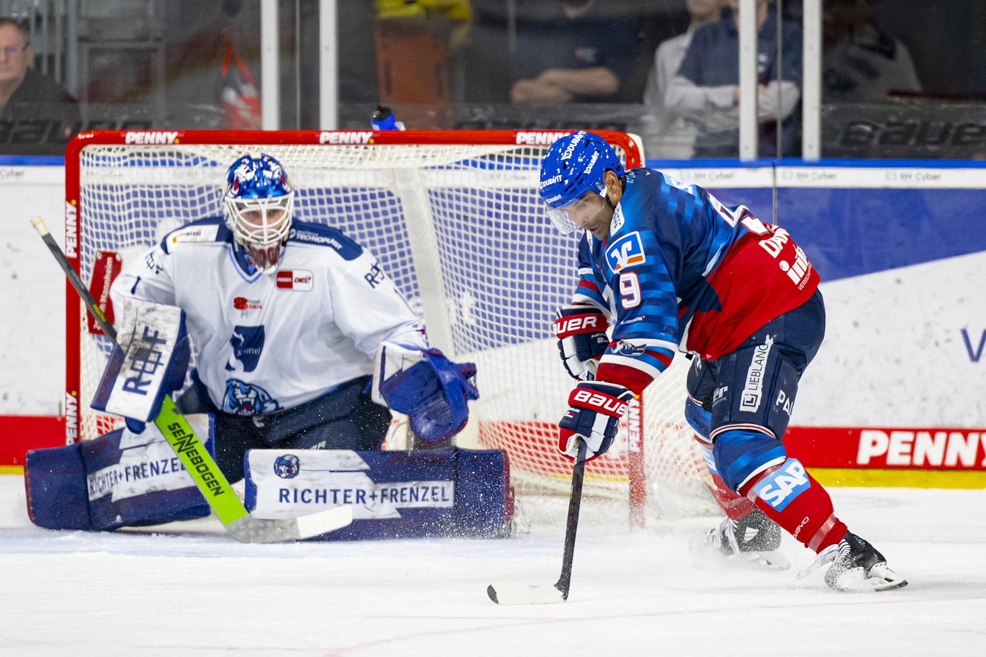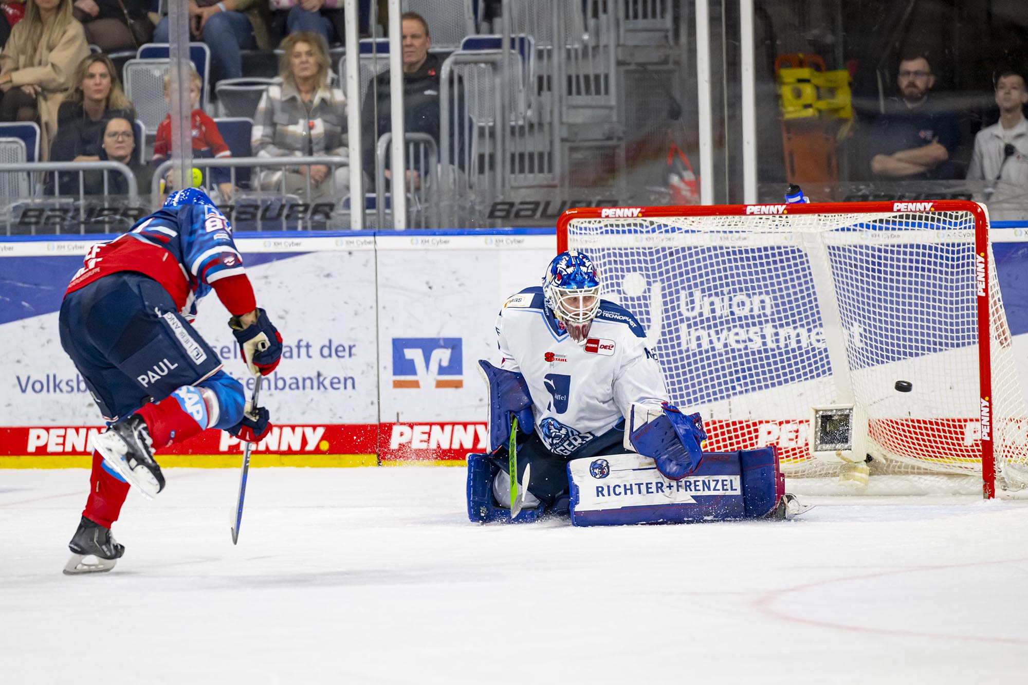 Die Partie begann temporeich und blieb nahezu unterbrechungsfrei, allerdings auch ohne größere Torchancen. Die erste richtig gute Chance hatte Borna Rendulic aus dem Slot, sein Schuss über die Schulter von Tigers-Torhüter Florian Bugl markierte direkt das 1:0 (5.). Als Sinan Akdag in der neunten Minute auf der linken Seite zu viel Platz hatte, besorgte der Verteidiger mit einem Schlenzer ins lange Eck das 2:0. Felix Brückmann musste in der 13. Minute erstmals ernsthaft beim Schlagschuss von Jason Akeson eingreifen, parierte kurz darauf in Unterzahl zudem stark gegen Luke Adam (14.). Eine Unaufmerksamkeit in der eigenen Zone ermöglichte den Tigers 61 Sekunden vor der ersten Pause den Anschlusstreffer durch Tim Brunnhuber.