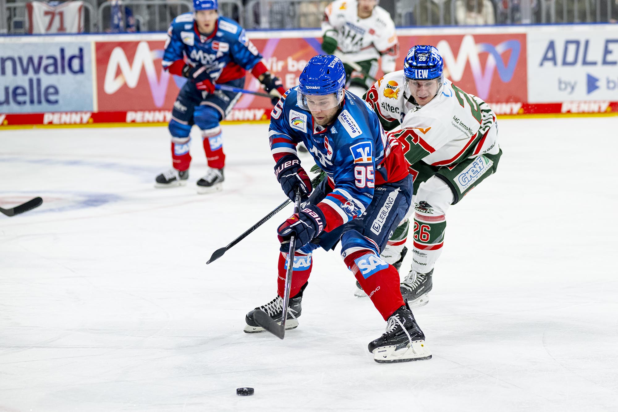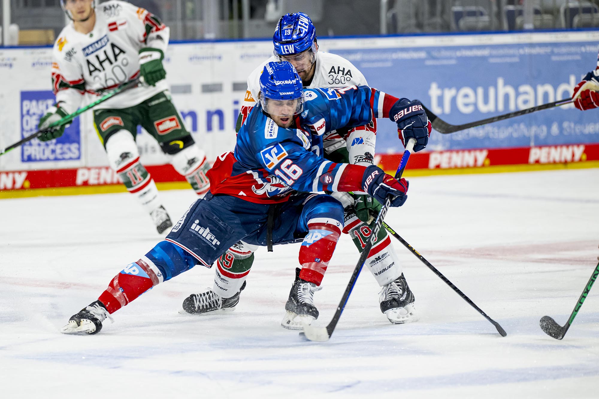 Die Adler spielten gegen die Panther von Beginn an ihre läuferische und spielerische Überlegenheit aus. Zwar musste Torhüter Felix Brückmann in der fünften Minute gegen Terry Broadhurst und Samuel Soramies eingreifen, doch ansonsten spielte sich das Geschehen vor Augsburgs Keeper Markus Keller ab. Beim 1:0 spielte Korbinian Holzer einen scharfen Pass auf den frei am Torraum postierten Torschützen Taro Jentzsch (6. Minute), vier Minuten später erhöhte Luca Tosto mit einem schnellen Schuss aus der Drehung auf 2:0. Das Team um Kapitän Denis Reul hatte seinen Gegner fest im Griff.